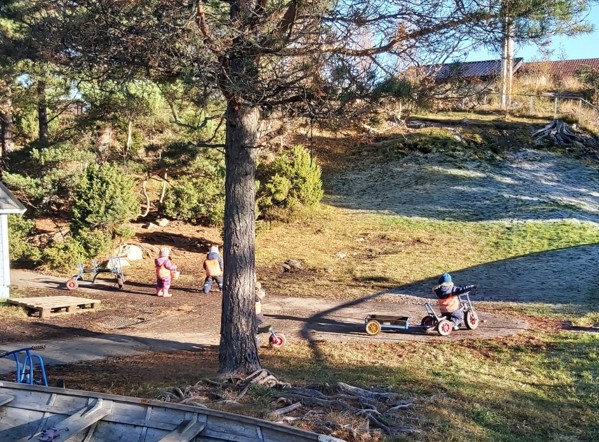 Det er i alle fall høgt verdsett når hausten viser seg frå si kalde og vindstille side, utan regn. Barna må erfare kva hausten er. At veret varierer, dagane blir kortare, påkledninga før dei går ut tek meir tid. Tida for «jakke og sko» er over for ei stund, medan cherrox og vottar blir gode å ha på.