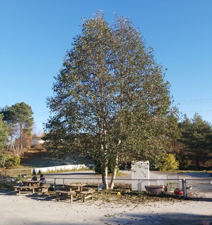 Hausten kjem alltid etter sommaren, og før vinteren. Lauvtrea mister blada sine, sjølv om ikkje alle tre får fine haustfargar. Og fuglane blir ivrige på fuglematarane bak barnehagen.