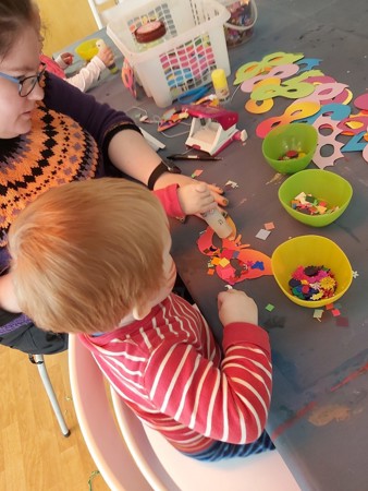 Barnehagen har vi pynta med ballongar, flagg, lys, vimplar, plakatar og konfetti. Det er ingen tvil om at det foregår feiring her i dag. Inne i barnehagen kunne barna gå mellom ulike aktivitetar som ansiktsmaling, disco, maske-verkstad, tatoering eller ordinær leik med dukker og duplo.
