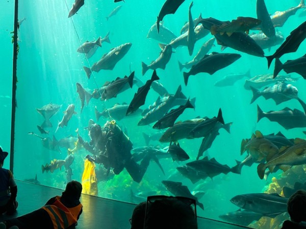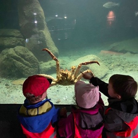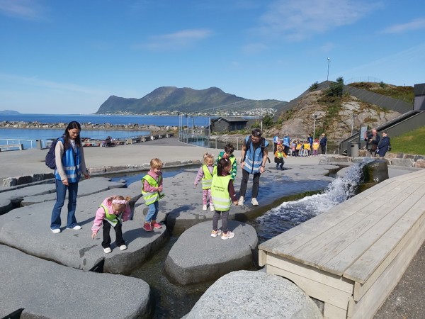 På Atlanterhavsparken fekk vi tatt i bruk heile sanseapparatet vårt. Vi fekk sjå fiskar svømme og krabbane krabbe. Pingvinane var vel det dyret som vi kunne høyre mest ifrå, men vi høyrte (og såg) også ein liten «mini-traktor» som rydda ved oterbassenget. I sanserommet fekk barna kjenne på det kalde sjøvatnet, og ta på både skjell, sjøpølse, sjøanemone og eremittkreps. Nokre lurte seg til å smake litt på sjøvatnet også.