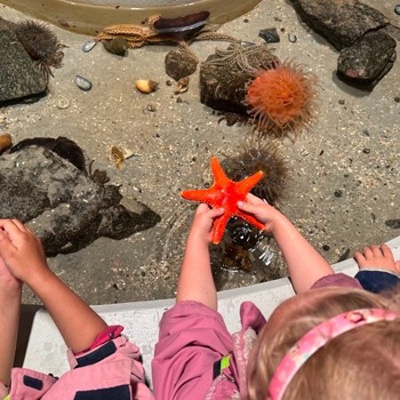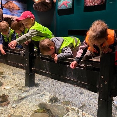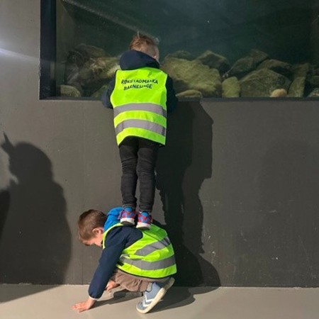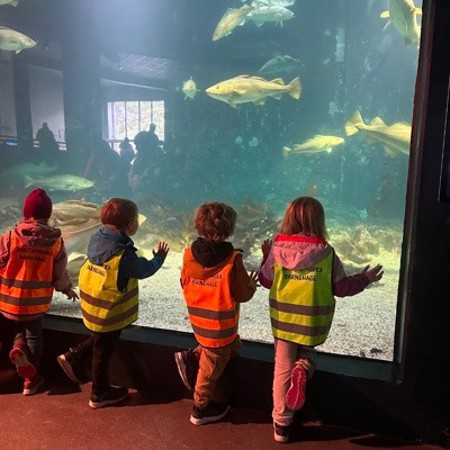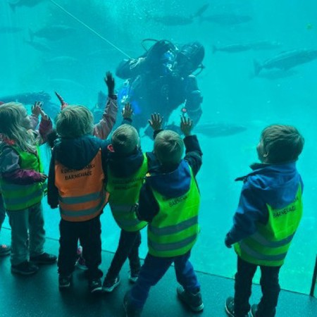 Barna hadde høge forventningar til både hai, oter og dykker på Atlanterhavsparken, og det innfridde! Pingvinane viste kor flinke dei er til å dykke og selane demonstrerte opp-ned-svømmimg i bassenget sitt. På aktivitetsrommet fekk barna prøve å fiske etter krabbe med reker til agn, eller halde sjøstjerner og studere kamskjel. Vi var også oppom den meir tekniske avdelinga der barna kunne sjå i kikert, dreie på lykkehjul for å finne ut kva yrke dei kom til å ende opp i, eller prøve å bevege seg som fisk gjennom «tang-rommet».