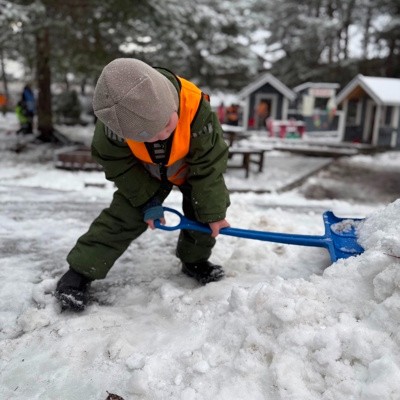 Snømåkene er også kjekke å jobbe med. Med dei får dei effektivt fjerna snø frå vegen og kjenner på at dei gjer ein innsats for fellesskapet i barnehagen.