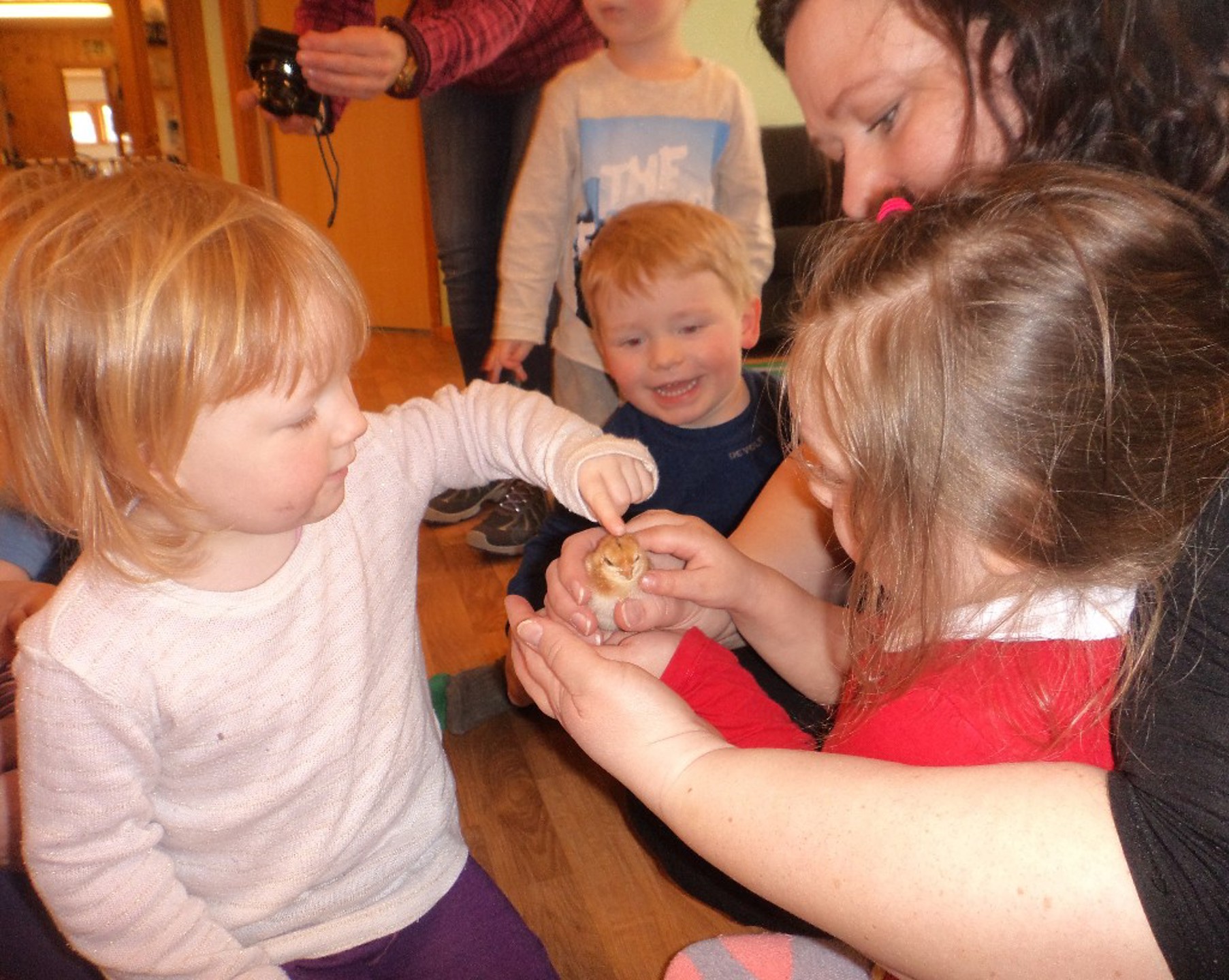 I alle år har vi før påske ruga fram kyllingar i rugekasse på barnehagen. Kvart år er spenninga stor på om vi lukkast i prosjektet. Dei vaksne på barnehagen er minst like spente og engasjerte som barna. Vi trur til og med mange av foreldra let seg rive med.