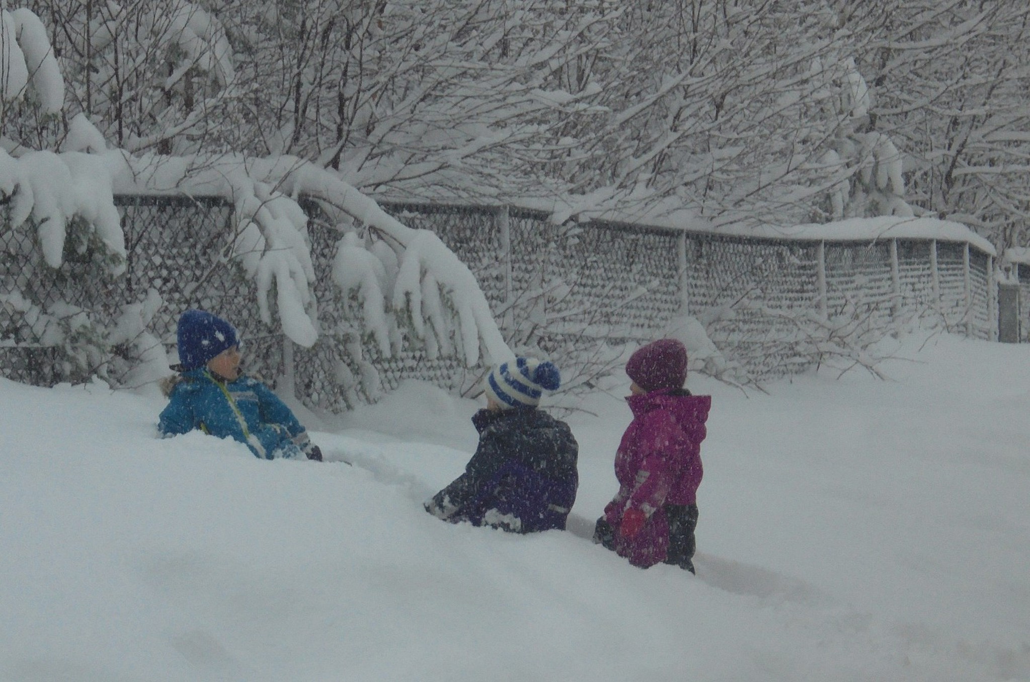 Utrusta med spader, akematter og rumpebrett inntok barna barnehagens uteområde med store smil. Barna har aka i akebakken, bygd snøhuler, prøvd å "disse" i dissestativet, hoppa ned i den djupe snøen og av og til tatt ein pause der dei har lurt seg til å ete litt av snøen.
